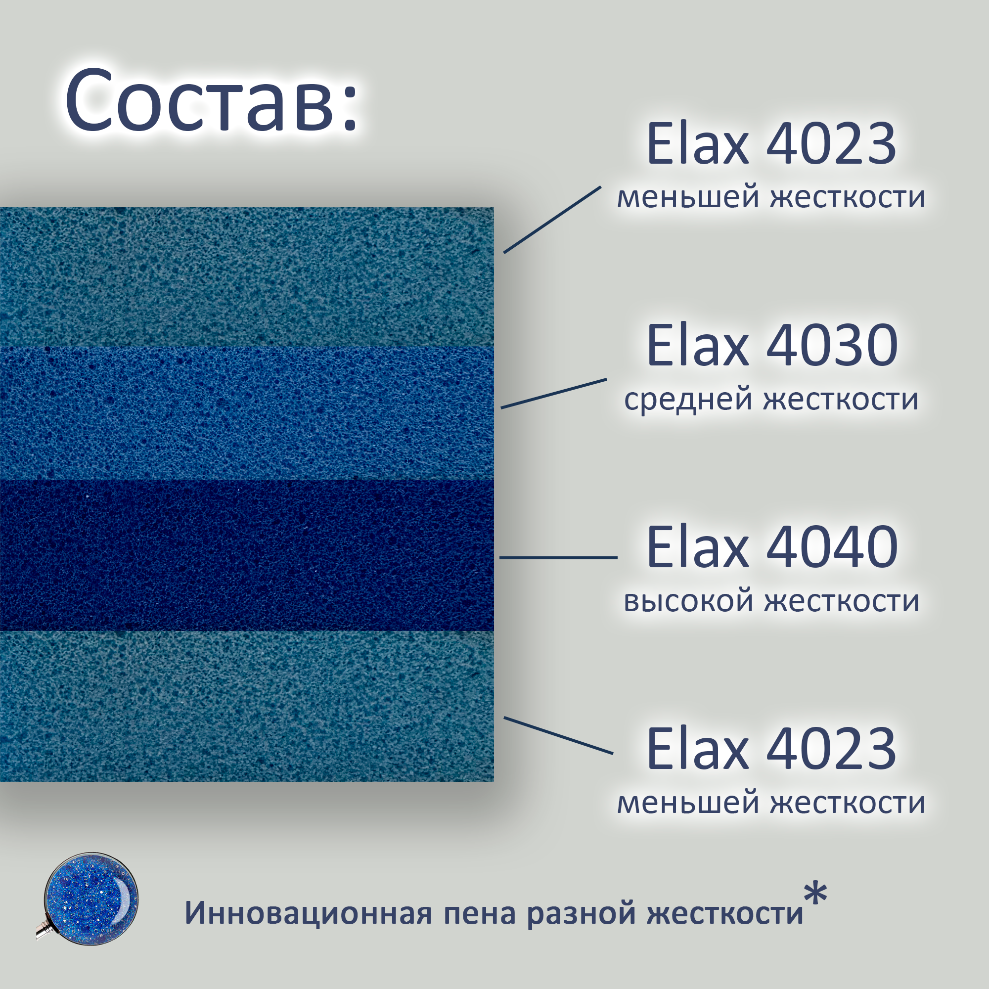 - Материал: Инновационная пенополиуретановая основа ELAX с открытой структурой клеток обеспечивает отличную циркуляцию воздуха и предотвращает накопление влаги.