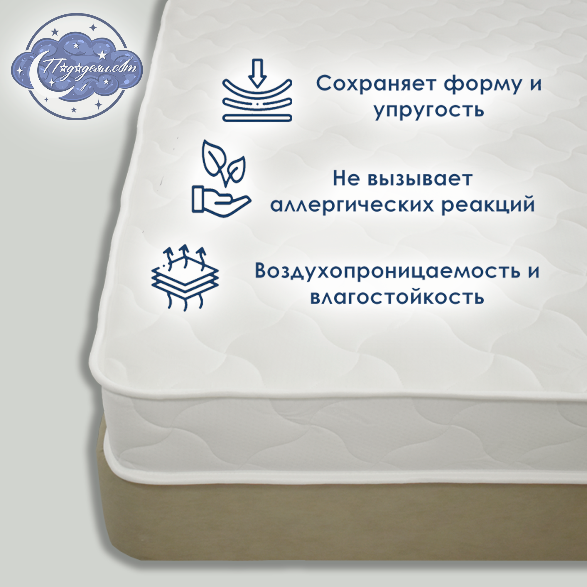 Чехол матраса выполнен из мягкого, гипоаллергенного трикотажа, стеганного на холконе. Трикотажная ткань отличается приятностью на ощупь, воздухопроницаемостью и долговечностью, создавая комфортные условия для сна и отдыха.