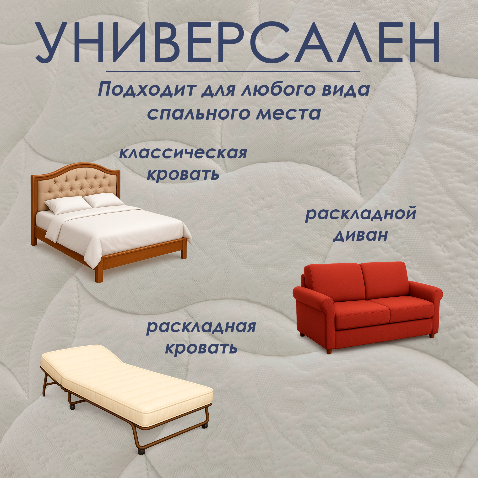 · Универсальность: Идеально подходит для использования как на новом, так и на старом матрасе, придавая ему новую жизнь и улучшая ваши ощущения во время сна.