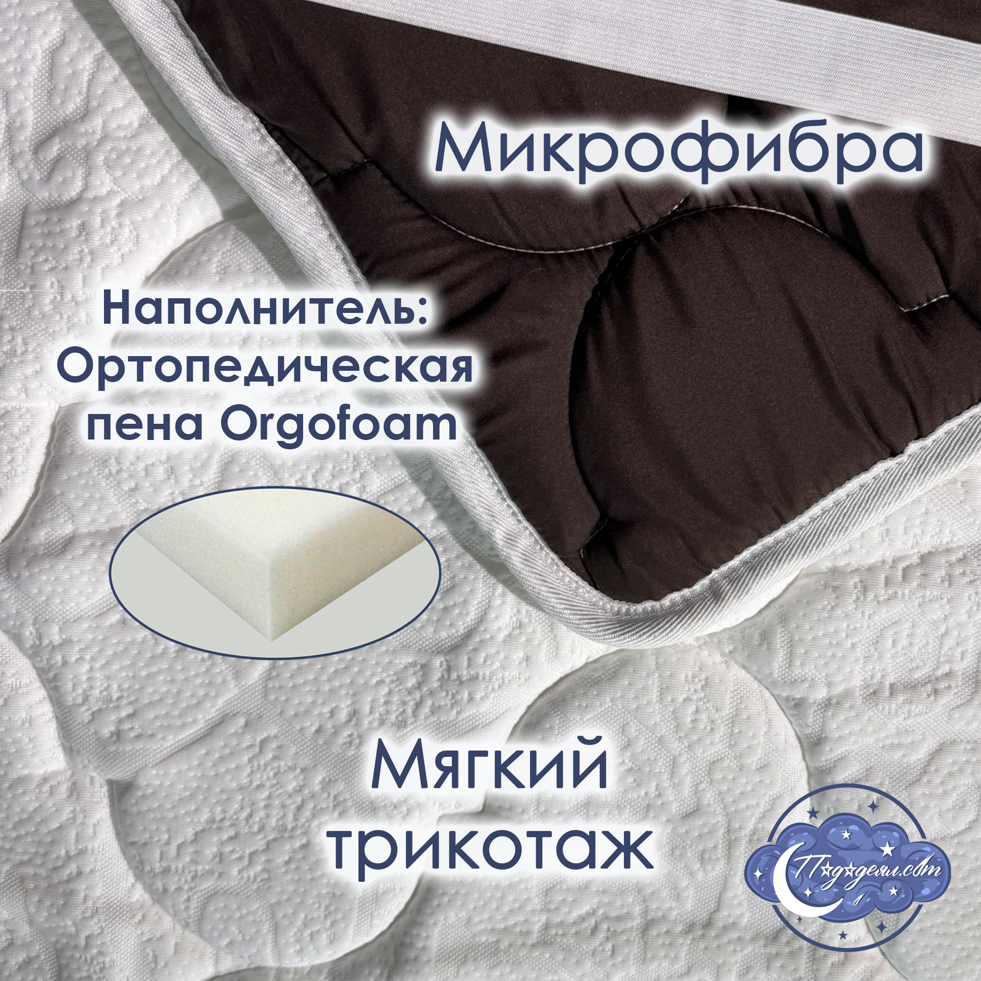 Подарите себе комфортный и здоровый сон с нашим топпером-наматрасником, изготовленным из высококачественной ортопедической пены OrgoFoam! Этот топпер станет отличным решением для улучшения вашего матраса, а также выровнит неровности на диване, обеспечивая идеальную поддержку и уют во время сна. Чехол изготовлен из высококачественного трикотажа с одной стороны, с другой стороны микрофибра шоколадного цвета. Использовать топпер-наматрасник CACAO можно с обоих сторон.