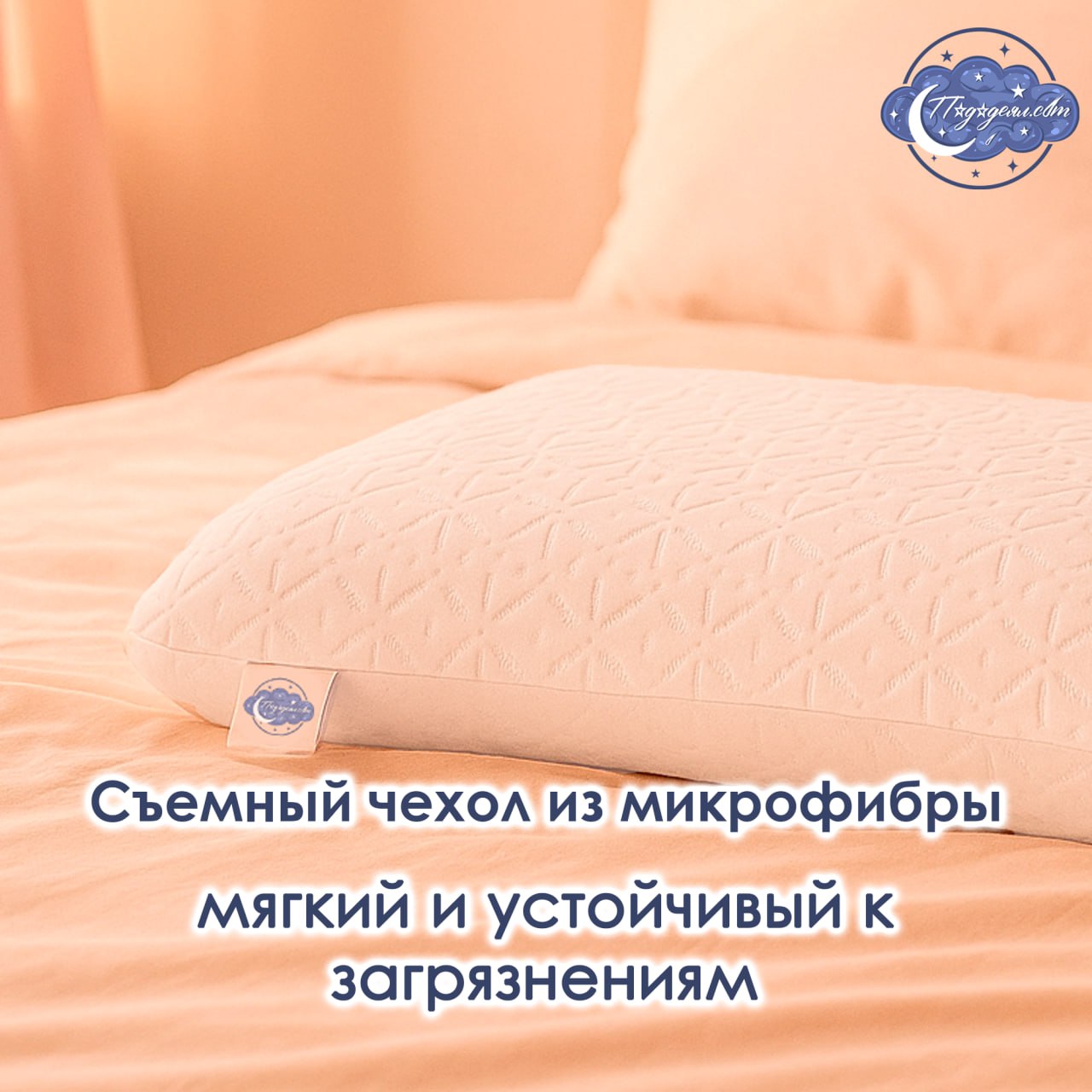 Съемный чехол из микрофибры обеспечивает легкость ухода и дополнительную мягкость, а также защищает подушку от загрязнений.