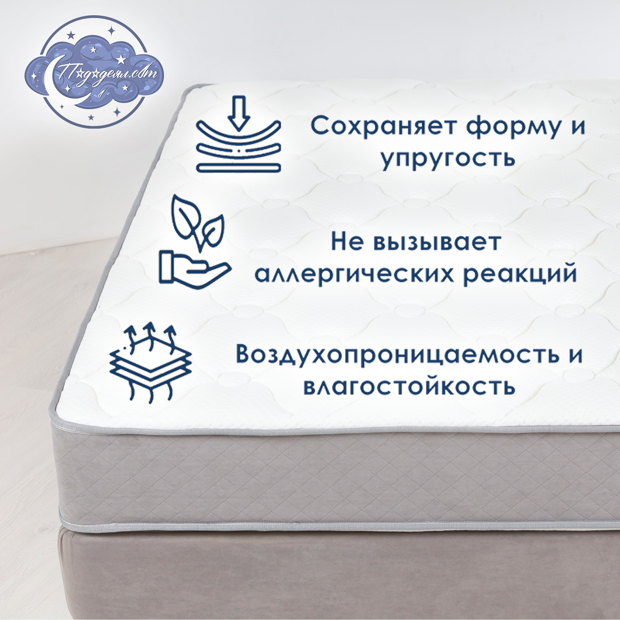- Memory Foam (2 см) — уникальная пена с памятью формы, мгновенно приспосабливается к контурам вашего тела, снижая давление на суставы и мышцы.